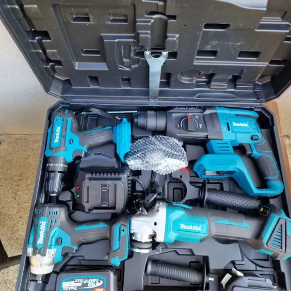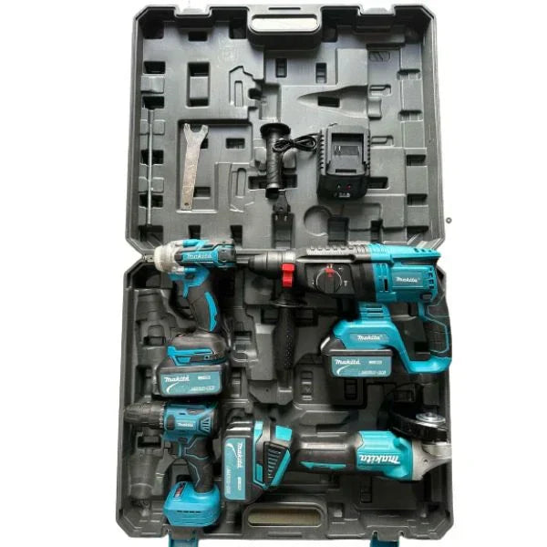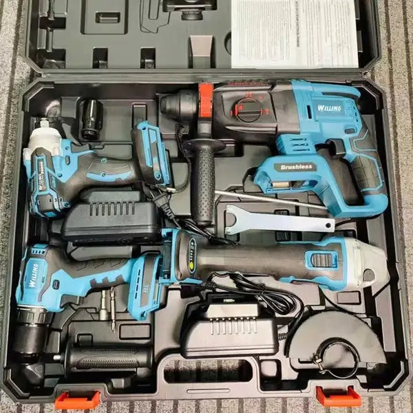 Upoznajte Aku 4u1, multifunkcionalni komplet alata koji kombinuje udarni odvijač, brusilicu, šrafilicu i bušilicu sa čekićem, sve u jednom uređaju. Ovaj set alata je savršen izbor za profesionalce i entuzijaste u DIY projektima koji cene visok kvalitet i svestranost.