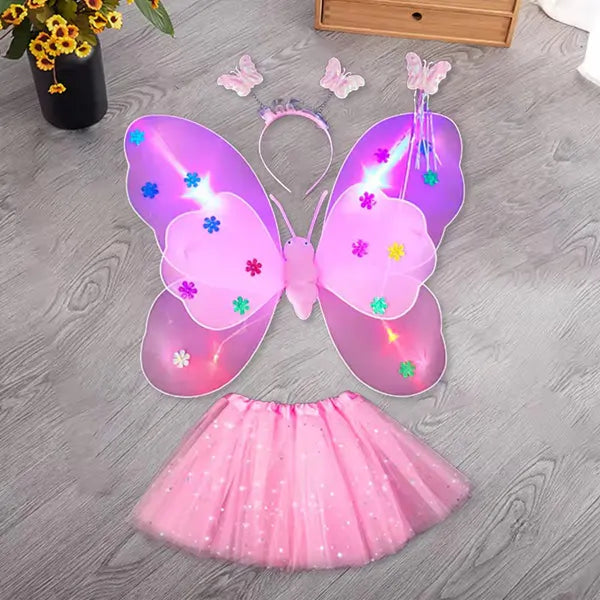 Kompletić sa svetlećom suknjom i krilima savršen je izbor za svečane prilike, maskenbale, rođendane ili svakodnevnu igru.