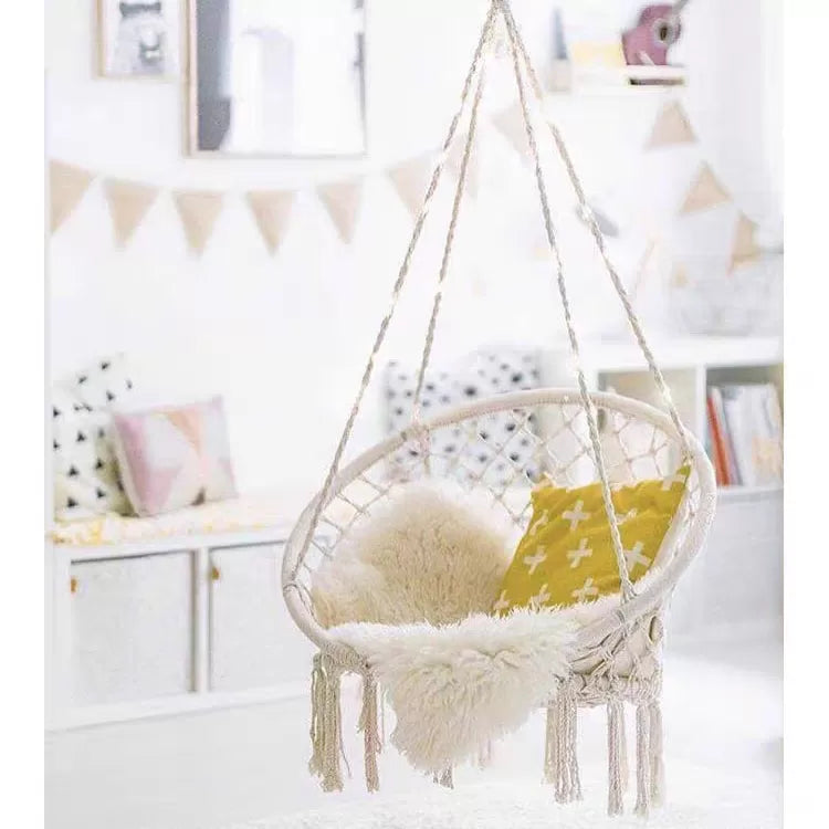 Ova prelepa ljuljaška izrađena je od čvrste metalne konstrukcije i kvalitetnog pletenog kanapa, garantujući dugotrajnost i izdržljivost do 120 kg nosivosti. Sa prečnikom od 80 cm i visinom od 120 cm, pruža udoban prostor za sedenje. Zahvaljujući montiranim metalnim alkama, lako se postavlja na različite lokacije – na terasu, u vrt pod nastrešnicu, ili unutar vašeg doma. Dolazi spremna za upotrebu, bez potrebe za dodatnom montažom.