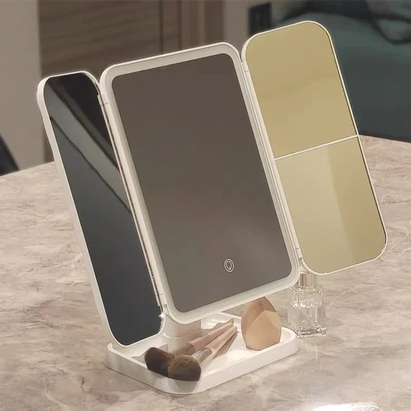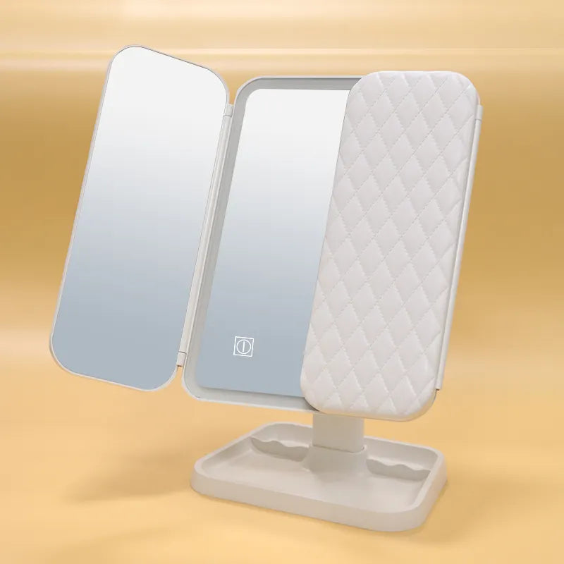 Predstavljamo vam naše prenosno LED ogledalo sa svetlom – idealnog pratioca za vašu lepotu. Jednostavnim dodirom dugmeta uključujete LED svetlo koje pruža meko i ravnomerno osvetljenje, osiguravajući da vaša šminka izgleda besprekorno i realistično u svakom okruženju. Možete birati između tri režima osvetljenja (bela, topla i prirodna svetlost) i podesiti jačinu osvetljenja dugim pritiskom na dugme za napajanje. Dodatno, baza ogledala nudi praktičan prostor za odlaganje sitnih predmeta poput kopči za kosu, gumica ili minđuša, a tu je i dodatno ogledalo koje uvećava do 3 puta za precizne detalje.