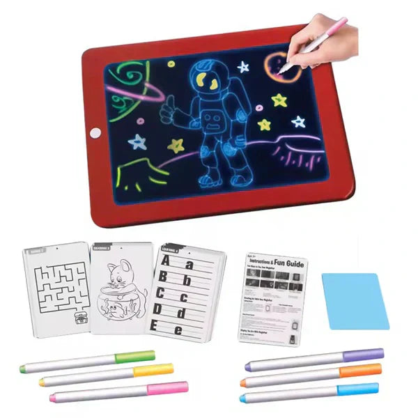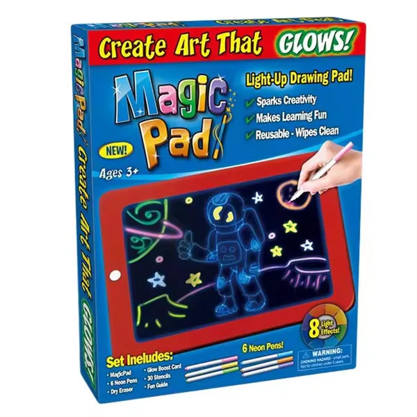 Unesite čaroliju crtanja u dečiju svakodnevicu sa magičnom tablom za crtanje sa priborom. Ova jedinstvena tabla dolazi sa 30 različitih šablona koji omogućavaju deci da skiciraju svoje omiljene junake iz crtanih filmova. Sa 8 različitih svetlećih efekata, crteži na Magic Padu oživljavaju i svetle u mraku, pružajući neograničenu zabavu. U pakovanju su uključena 3 dvostrana markera u različitim bojama, što omogućava lako i zabavno crtanje. Kada završe jedan crtež, deca ga jednostavno mogu obrisati i početi ispočetka, što ih podstiče da stalno istražuju i stvaraju nova remek-dela.