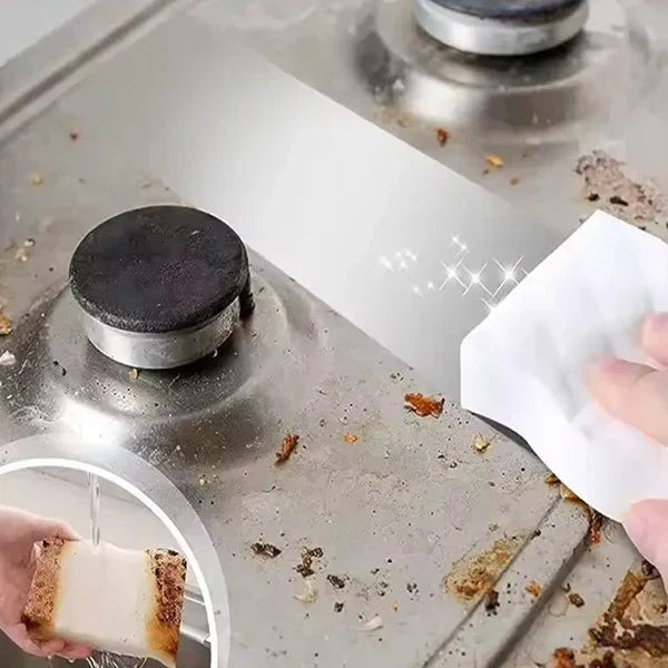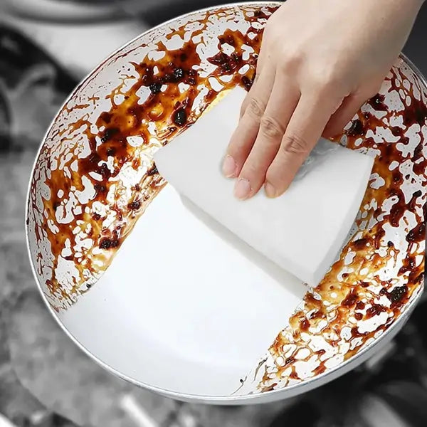 Bez štetnih hemijskih sredstava možemo skinuti kamenac sa ovim sundjerom, nije potrebno dodavati štetna hemijska sredstva za čišćenje, potrebno je samo pokvasiti magični sunđer, lako može ukloniti mrlje i bez nanošenja štete.