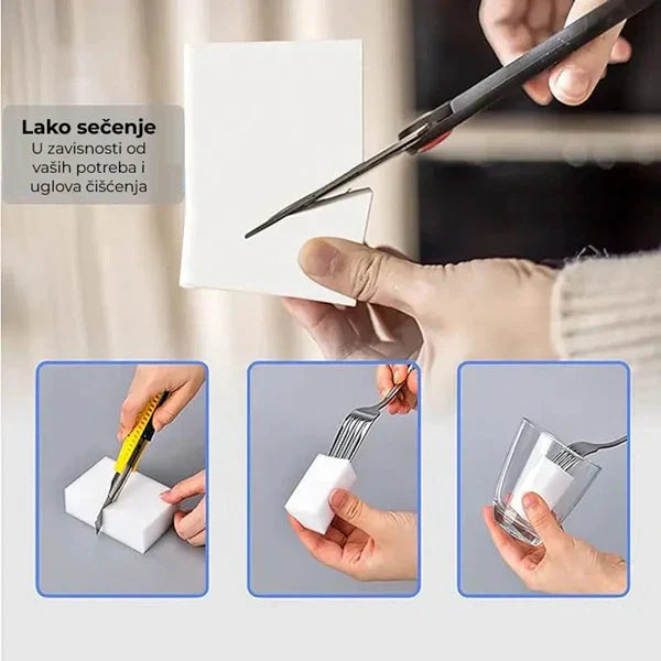Magični sunđer je napravljen od ekološki prihvatljive melaminske pene, bez hemikalija, bez iritacije i nano-proizvodne tehnologije. Super sposobnost čišćenja čini površinu predmeta čistijom i lepšom.