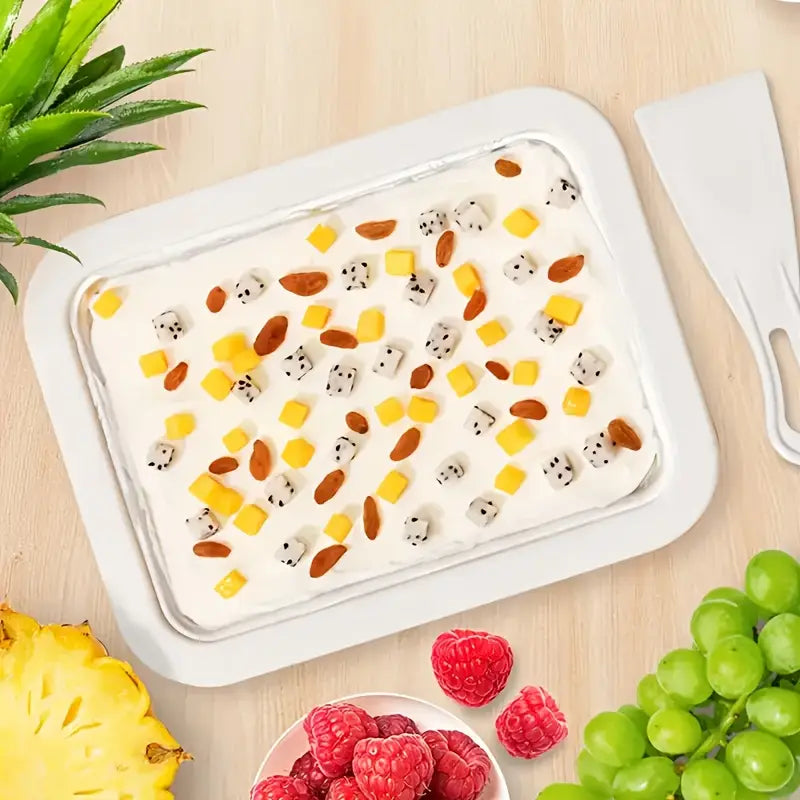 Predstavljamo vam ploču za sladoled koju svi žele – viralni hit koji je osvojio milione na TikToku i Instagramu, a sada je dostupan i vama u sopstvenoj kuhinji! Postavite voće, prelijte jogurtom ili mlekom, a zatim uz pomoć lopatica oblikujte svoj unikatni sladoled. Kockice, rolnice ili nešto treće – vi birate stil! Ovaj set ne zahteva skupe mašine ni nepotrebne dodatke, već samo vašu kreativnost i domaće namirnice.