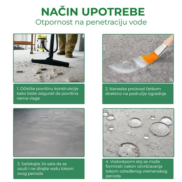 Vodootporna pasta za izolaciju se samo premaže sa običnom četkom i može da se koristi na suvim i mokrim površinama.