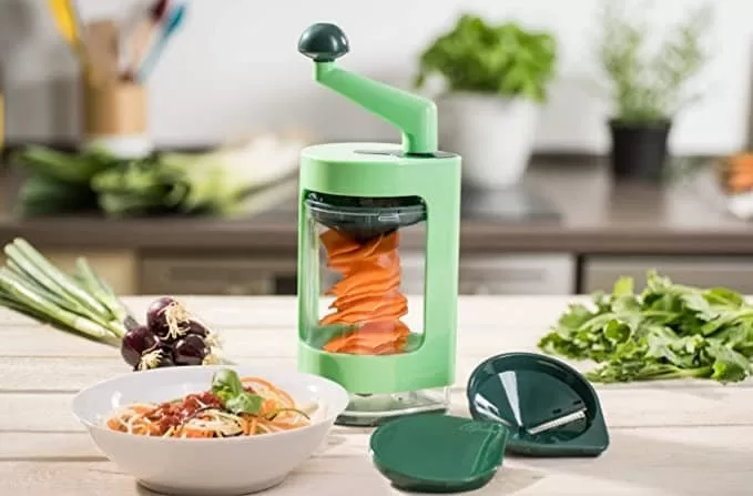 Samo ubacite hranu, okrenite ručku i vaše spirale su gotove. Bilo da je to krompir, rotkvica, cvekla, luk ili tikvica.